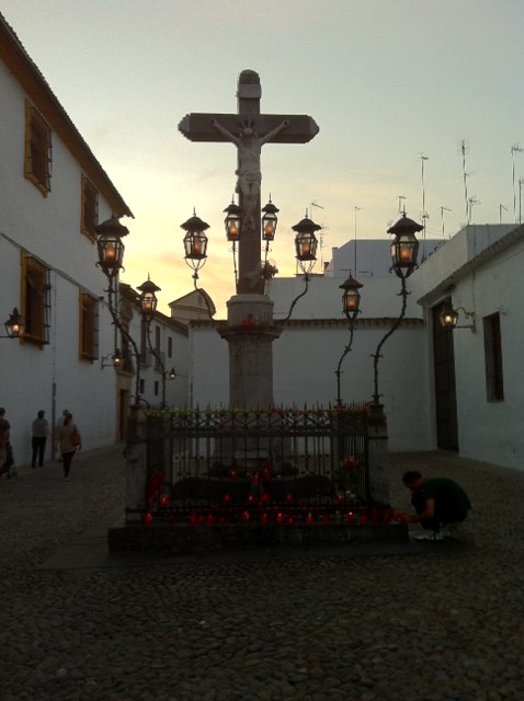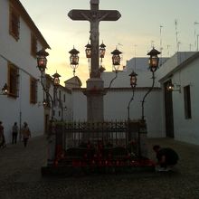 少し分かりにくいですが、大きい通りAlfarosにでれば、メスキータを背にして歩くと左側に薬局やさんがあり、その横に階段があるのでそこを登ると広場があります。