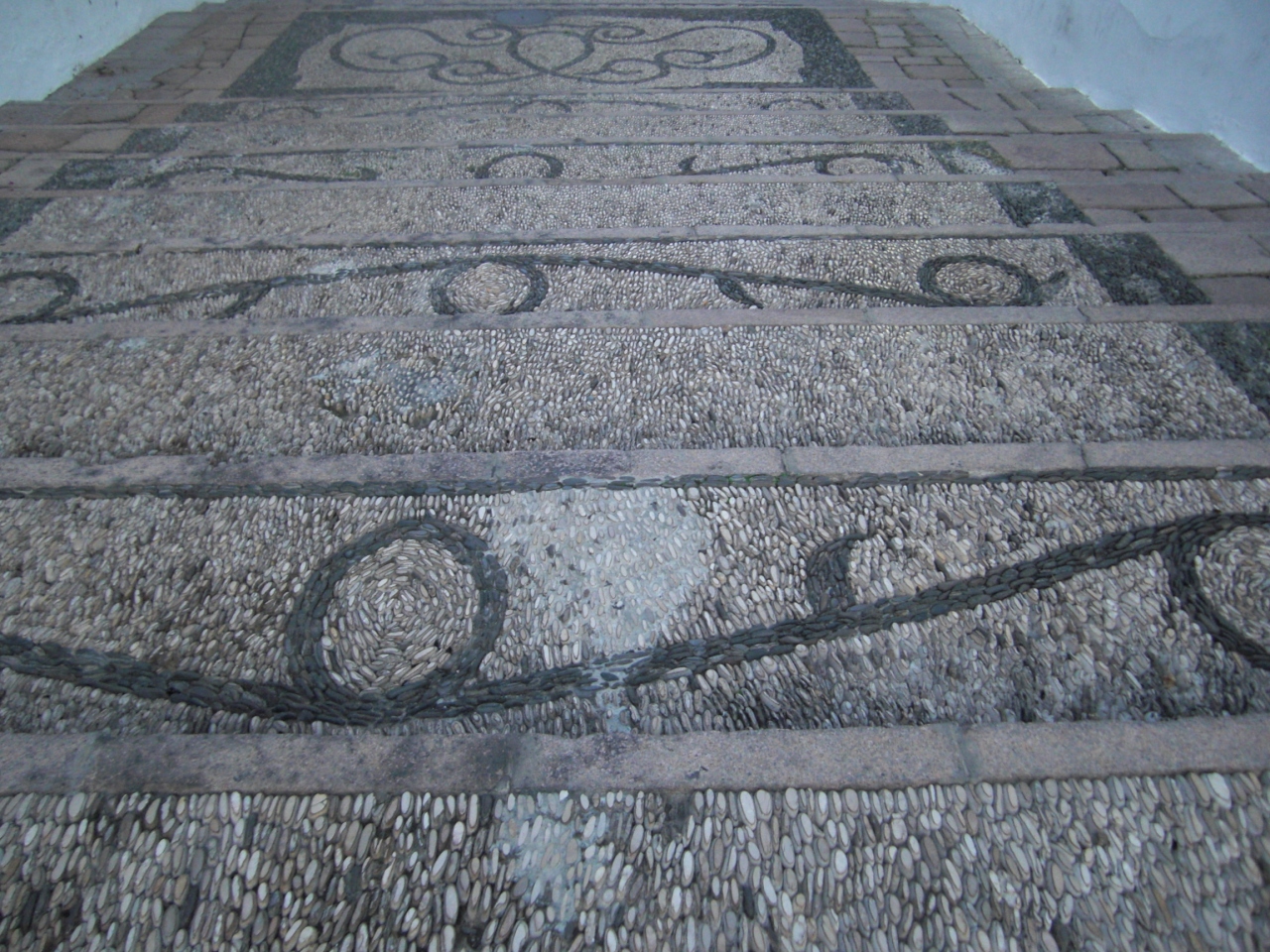 かなり古い階段のようです。素敵な石畳で模様いりの階段です。