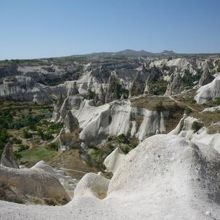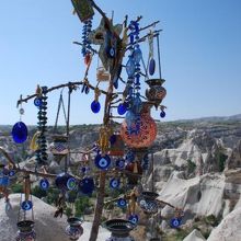 カッパドキアで、グリーンツアーに参加しました!まず、最初に訪れたのがここ「ギョレメパノラマ」!連なる奇岩の様子を展望台から一望でき、その景色に圧倒されます。TVで見たカッパドキアの景色は、まさにここからの景色でした。展望台には、トルコのお土産「ボンジュウ」を用いた小物など、ちょっとしたグッズも売られています。暑かったので利用しませんでしたが、展望台にはカフェもあり良い雰囲気でした!