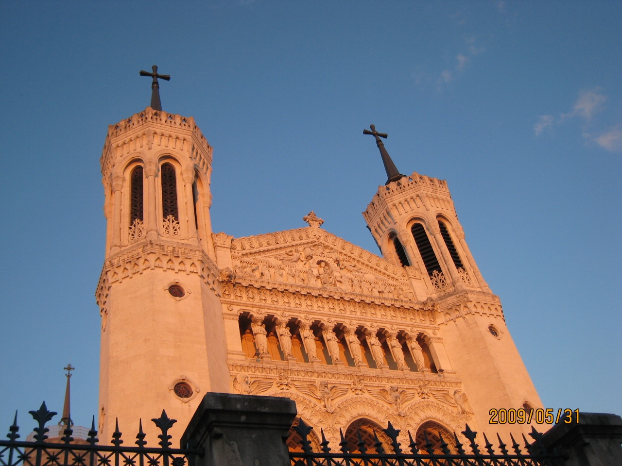 展望塔にも上ってみたかったのですが、歩いて目指して迷子になってしまったので、聖堂に到着したのは夕方で開いていませんでした。でも外観だけでも素敵です。夕日に映える聖堂はとってもキレイでした。また聖堂横の広場から見えるリヨンの街の眺めは最高でした。