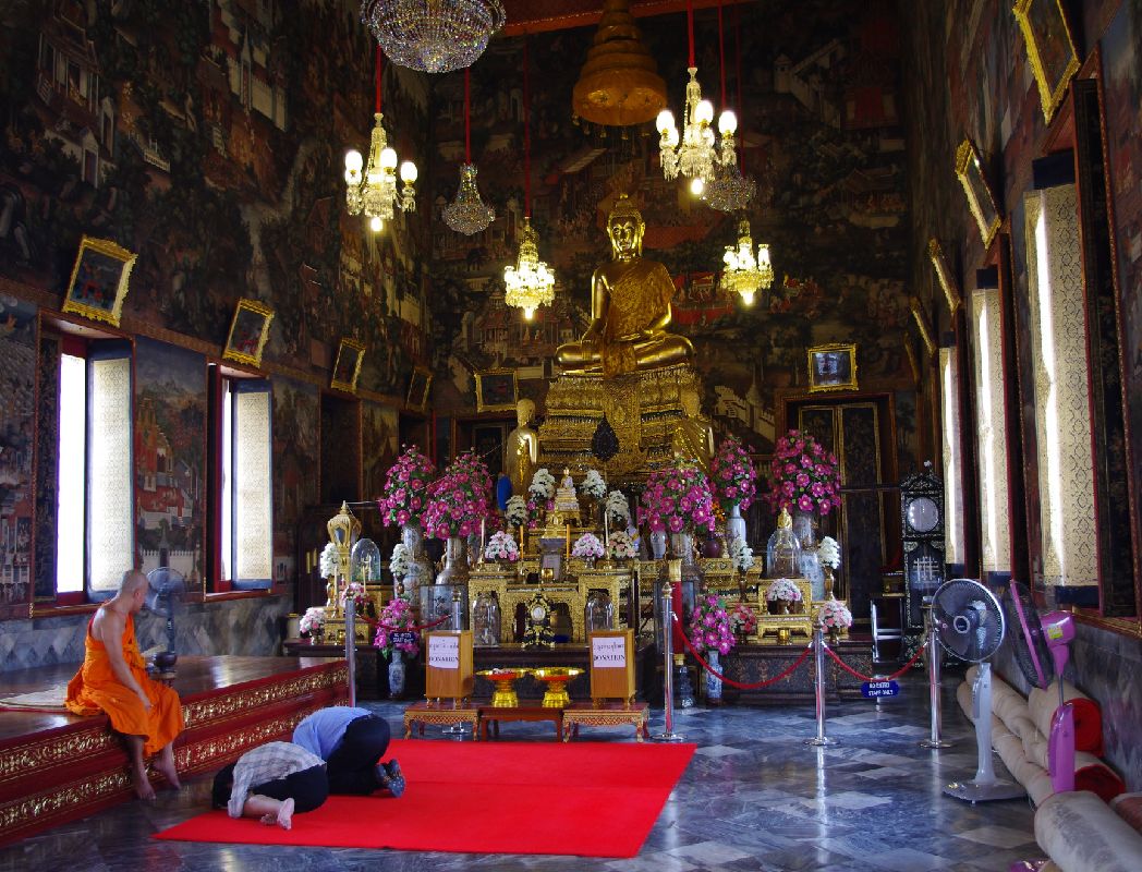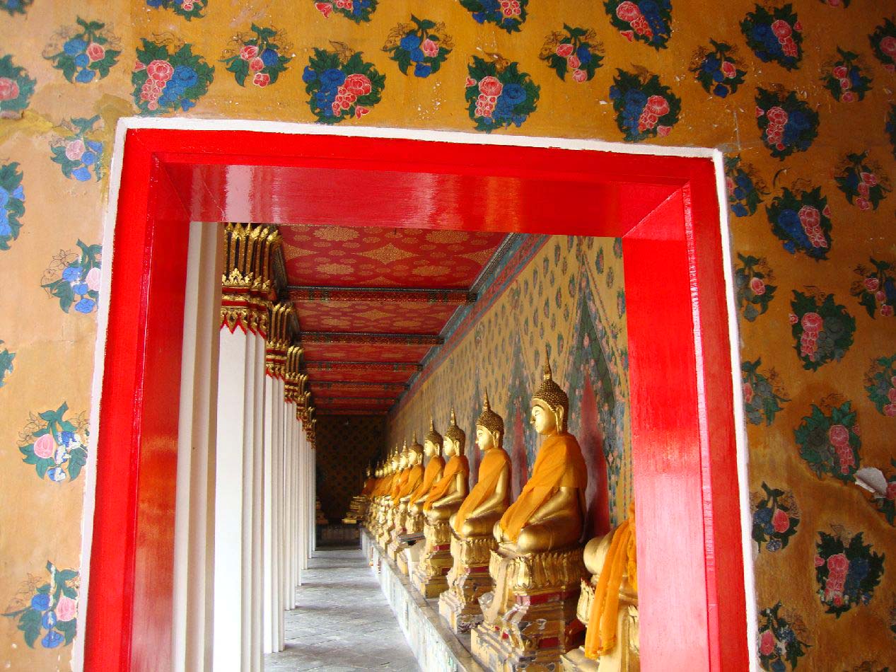 ワット・アルンは仏塔ばかりが注目されますが、奥の本堂の周りの回廊も仏像がたくさん並びきれいなので見学するのをお忘れなく。