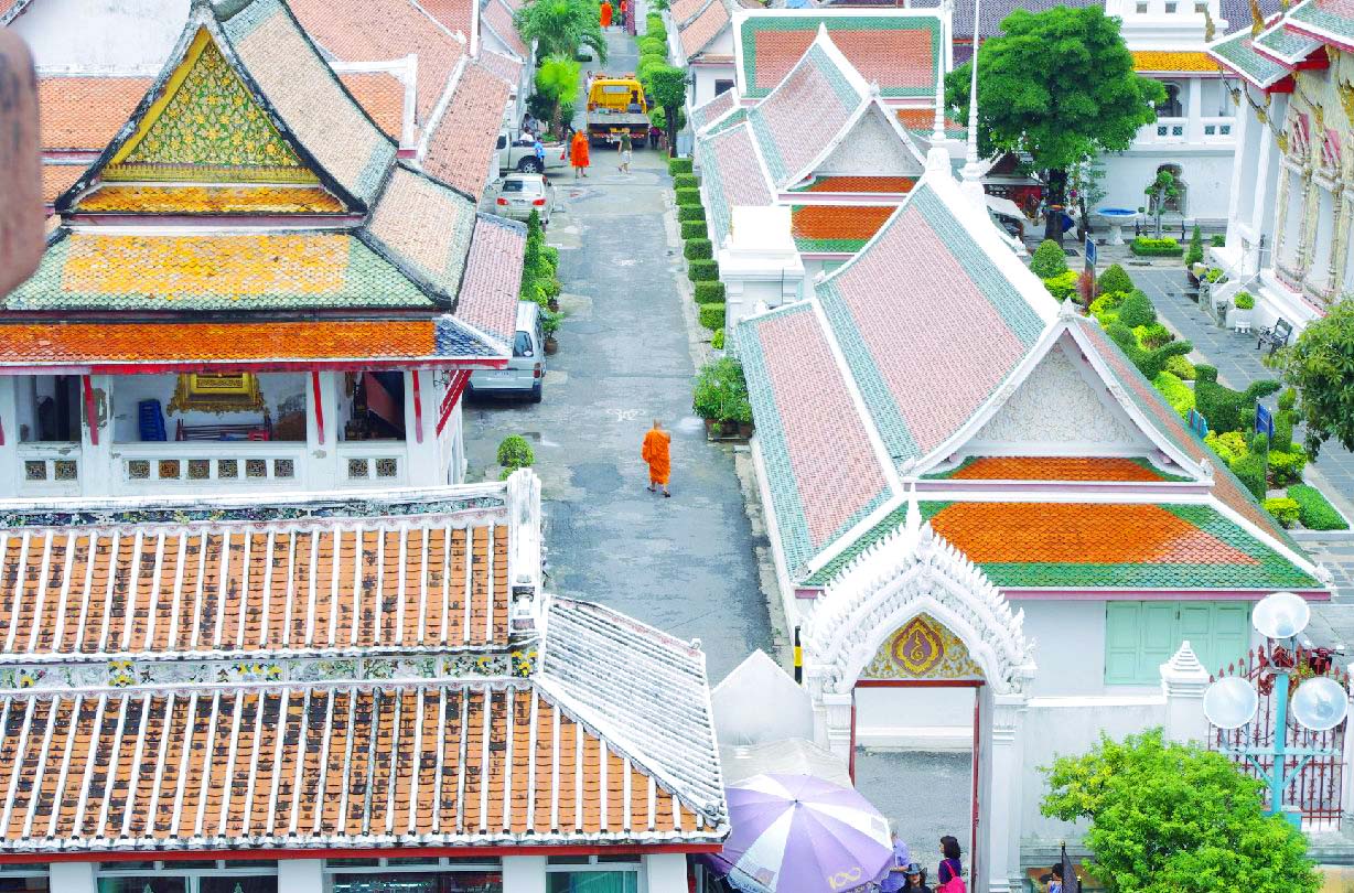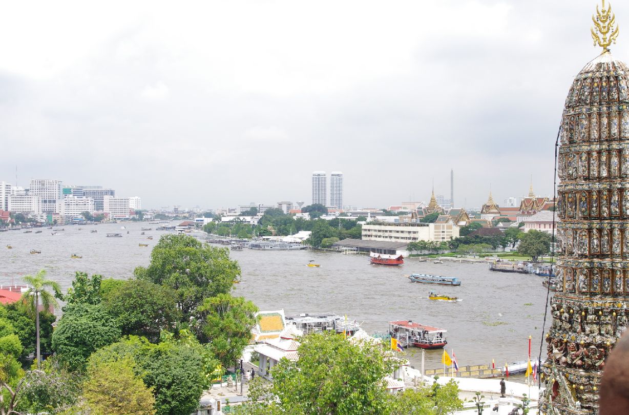 高い仏塔に昇ってテラスから見るチャオプラヤ川周辺の景色は良いです。