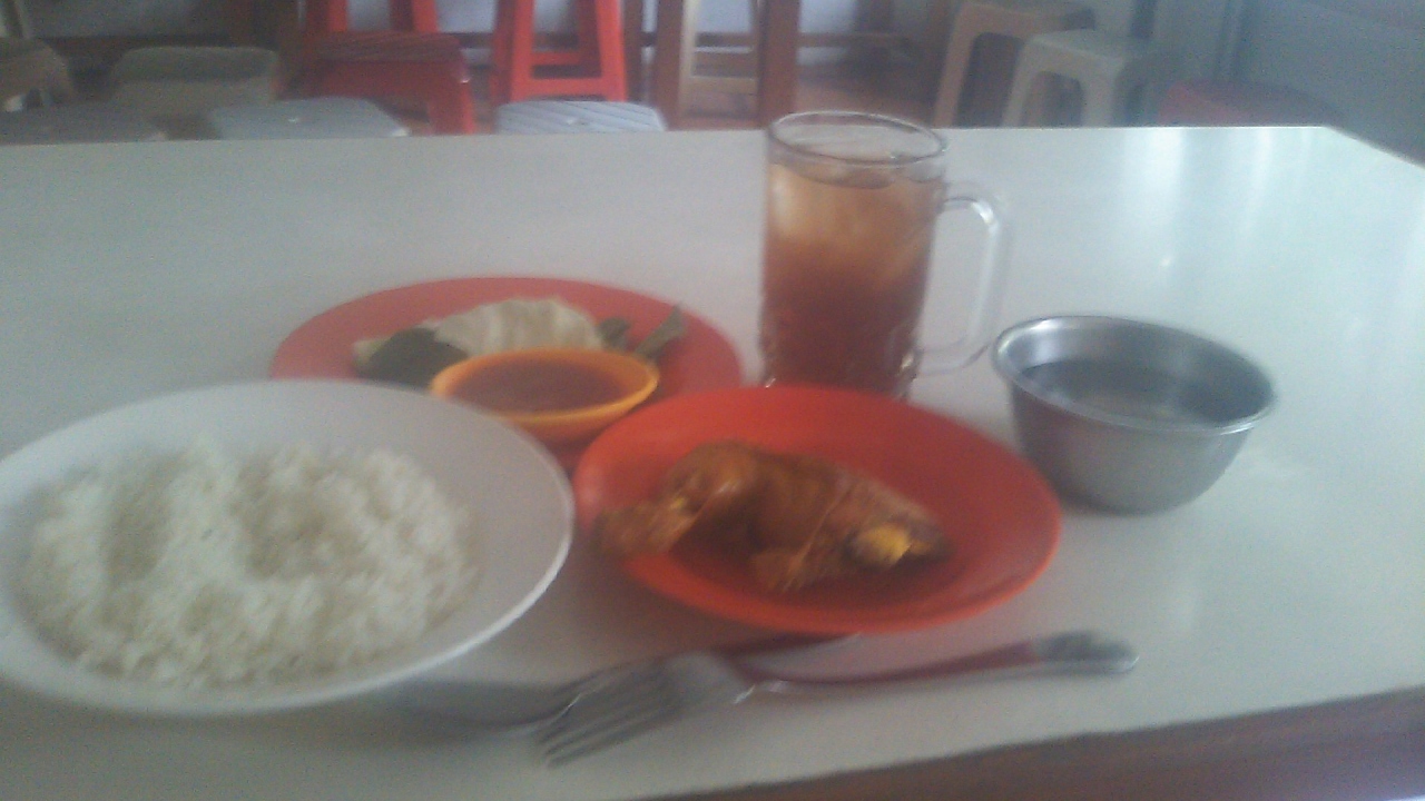 クタの市街地から少し離れた所にあるお店です。クーラーが効いたスペースと、そうでないスペースの両方がありますので、好みに応じて席をチョイスできるのが良かったです。肝心のメニューに関しては、アヤン・ゴレン(フライドチキン)・カラサンが名物とのことだったのでこれをオーダーしましたが、なかなか美味でした。ただ、骨が多くて、ちょっと可食部分が少なく感じました。沢山食べたい方にはあまりお勧めできないかもしれません。私はアイスティーとナシ・プティ(白飯)をセットで頼みましたが、合計で20,000ルピアでした。