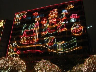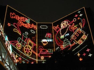 ペニンシュラホテルあたりから、新世界を通り、尖東(チムシャツイ・イースト)に抜けるあたりのクリスマスイルミネーションはとても素敵です。ビクトリア湾の夜景を楽しみながら、尖沙咀のクリスマスイルミネーションを楽しむ…お金はかからないけれどとても贅沢な気分に浸れます。