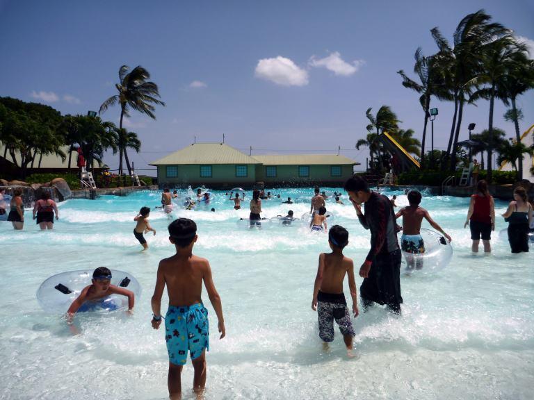 ウェット・アンド・ワイルド・ハワイには大きな波の出るプールをはじめ、沢山の仕掛けのあるプールと、水を使ったアトラクションが広い敷地に広がっています。