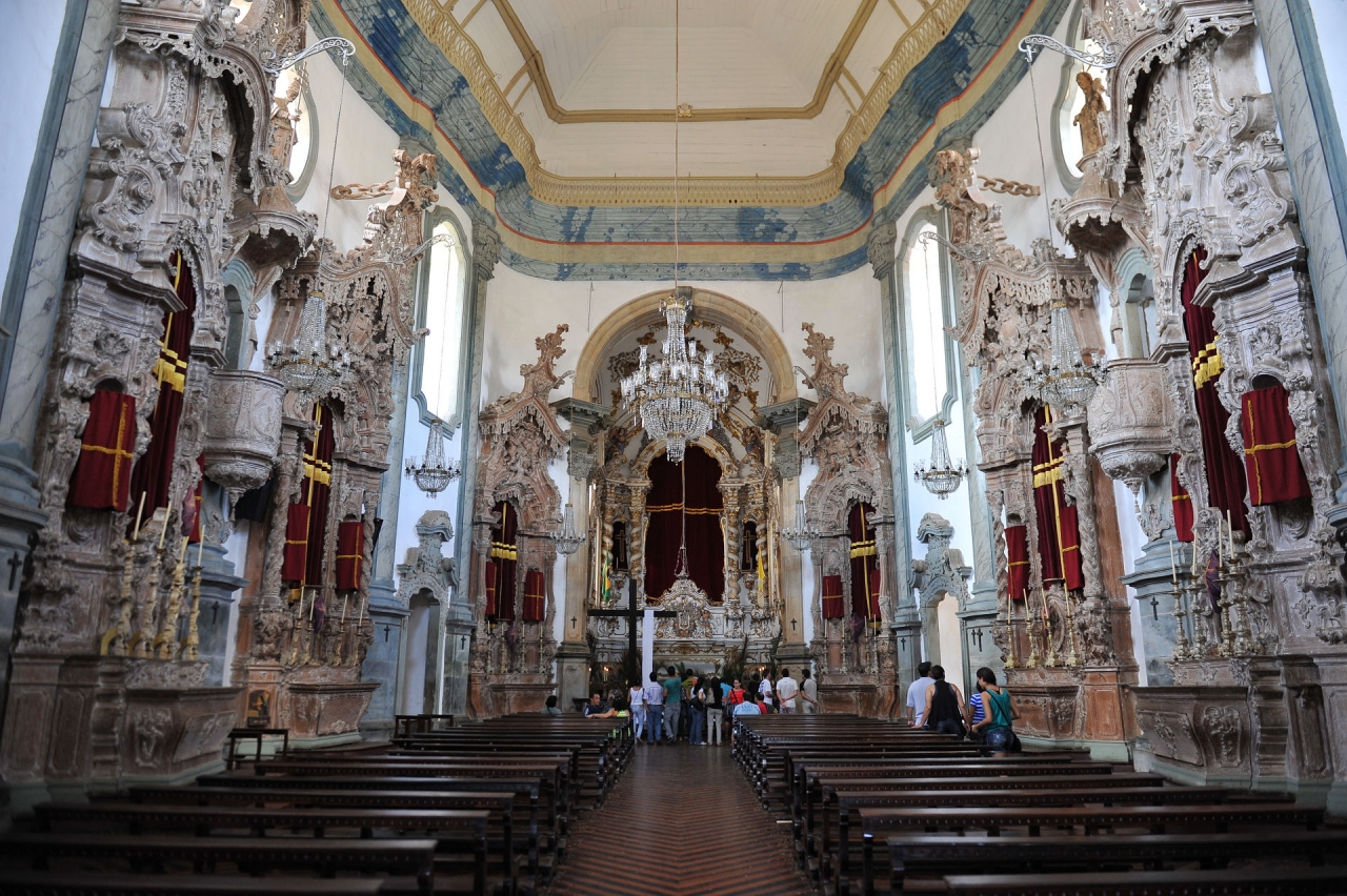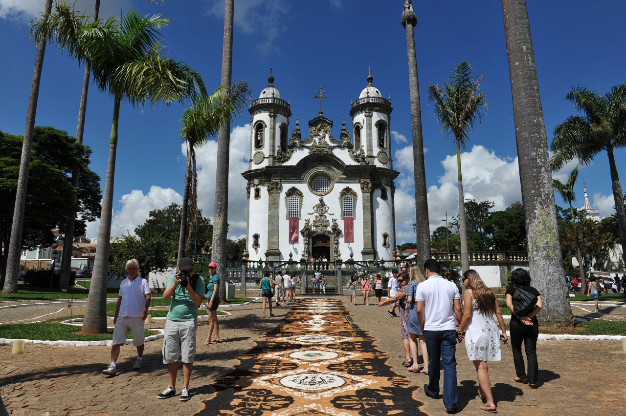 サン・フランシスコ教会は、サン・ジョアン・デル・ヘイ市にある白い教会です。教会手前にはヤシの木、教会内部は木造の細工が施しており、市内には複数の教会が建ち並んでおり、世界遺産であるオーロ・プレット、コンゴーニャスと併せて訪れるといいでしょう。