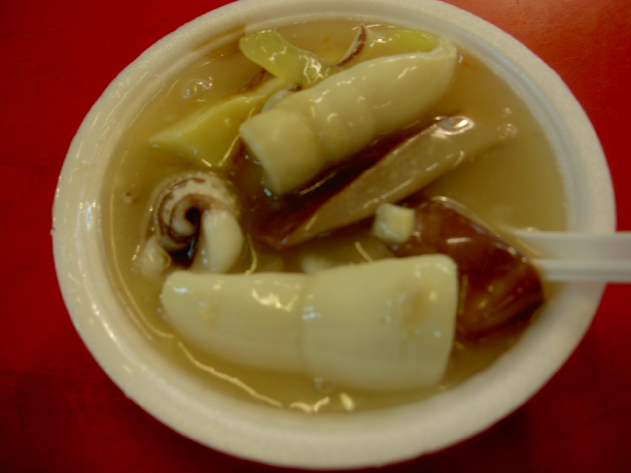 バスでティエンムーから市内へ向かう途中に、ひときわネオンが華やかな場所があり、降りてみたら士林夜市でした。数年前に立て直されたそうで、大きな建物のなかにはとてもたくさんの屋台があり、外にもゲームや軽食などの出店が山のようにありました。