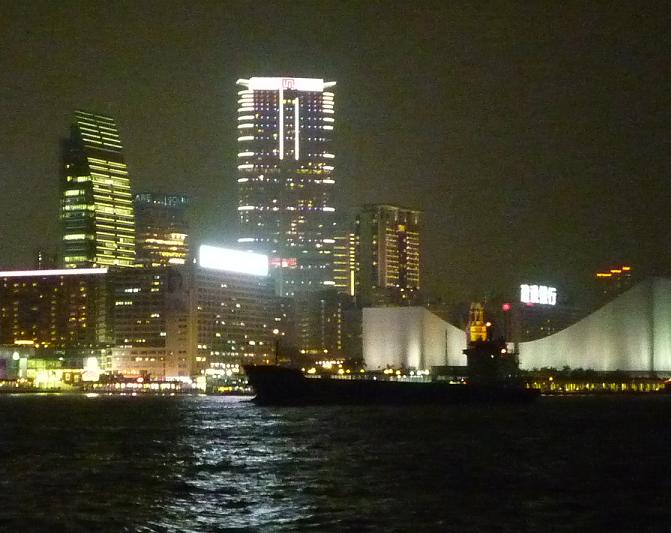 また、九龍側はペニンシェラホテルや香港文化中心の建物が見えますがそこに貨物船の姿が入って、海上からの景色を引き立ててくれたような気がしました。