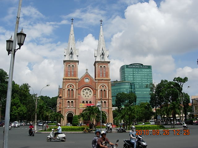 ホーチミンを初めて訪れるかたなら、そしてカメラ持参でしたら、この教会を背景に写真撮影を行うでしょう、、そんな場所です。ヨーロッパなどを訪れた経験がある方なら、写真を撮って、それでおしまい、、かもしれませね。でもホーチミンにあの建物があるというのがいいのでしょうね。美しい建築物です。