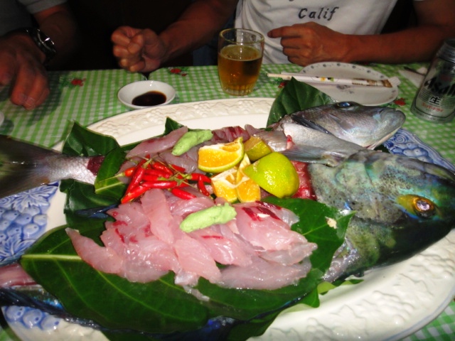 フィシングで取れた魚も早めに持ち込めばお刺身やフライにしてくれます