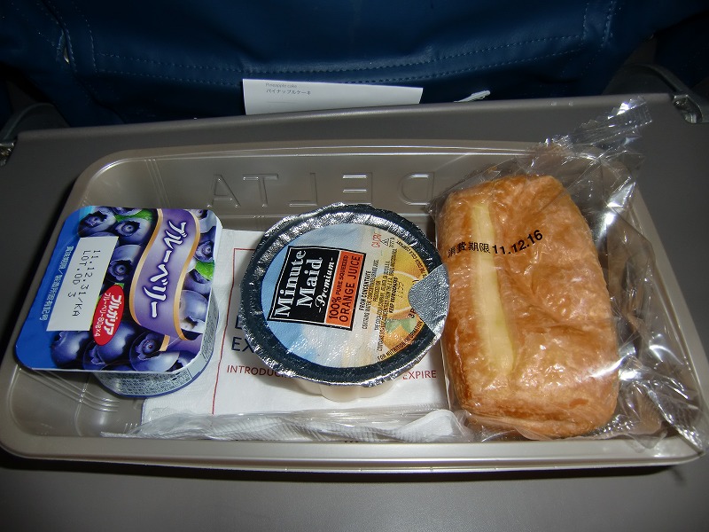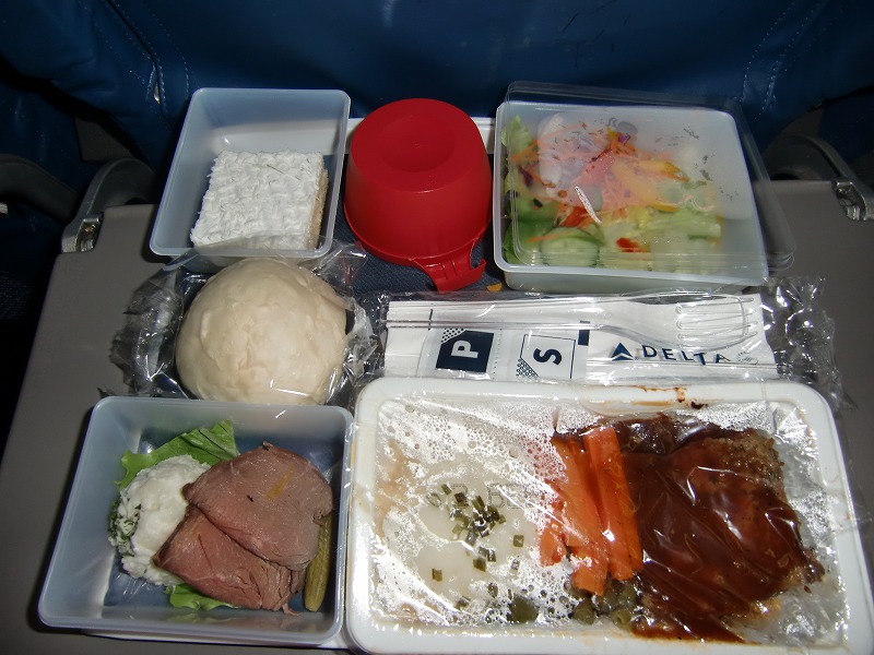 今回はデルタ航空でした。 以前 1度 グアムまで行ってきましたがその時には短い時間でしたのでモニターなどはまったくなくてもOKでしたが さすがに今回はちょっと厳しかったかもしれません 食事はまあ 普通 ホノルルに到着間際、又成田到着前の食事も