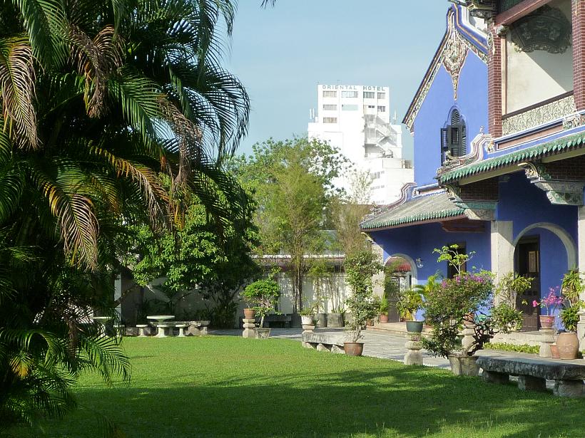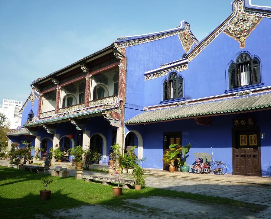 ペナンの富豪の邸宅だそうですが、建物の前には少し錆びた古いトライショウ(マレーシア式三輪自転車)が置かれていて、趣がある風情を演出していました。
