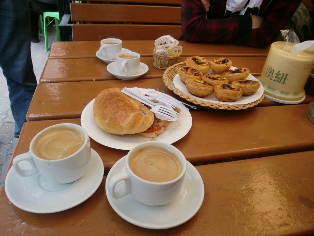 - マカオ(中国風の方)の町のど真ん中でオープンカフェ