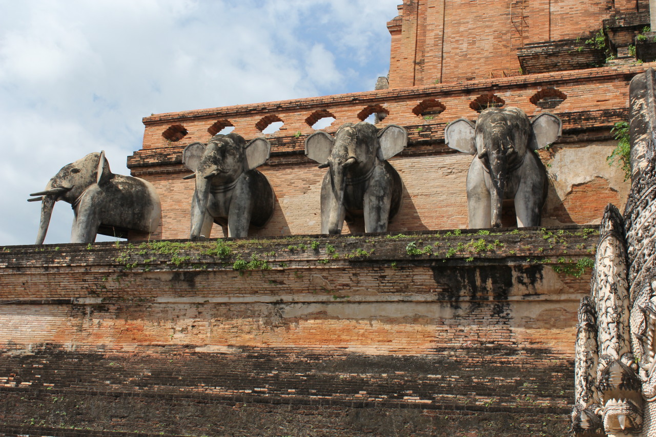しかし、チェンマイが都であったころの面影は十分です。象の飾りも修復されたものですが崩れ落ちた頂上部分がある往時の姿はすばらしかったに違いありません。