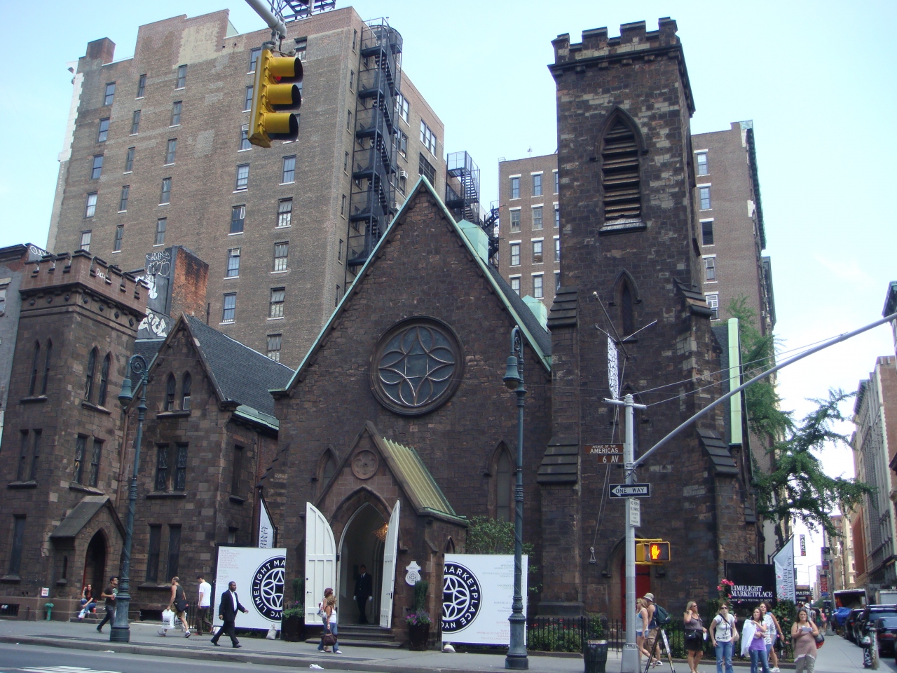 ゴシックリバイバル教会の建物は、Richard Upjohn によるデザイン。1844年から1845年に建設され、ランダムに配置された当時人気が高かった褐色砂岩のブロックをアレンジした。米国で初めて作られた非対称ゴシックリバイバル教会の建物は歴史的に見ても重要。 教会の創設者、牧師、William Muhlenberg は、聖公会内福音派のカトリックの指導者、彼は設計と密接に関わっていて、この建物を「キリスト教の真の建築表現」と評している。