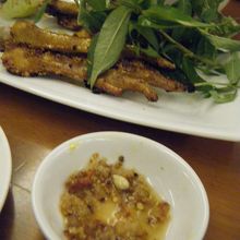 店内に水槽も在り、魚介から、肉、麺、とにかくメニューが豊富で、メニュー表も分厚い!地元の人で賑わってます。ビールも、サイゴン赤が12000ドンとお安いです。ただ、個人的には、店内が明るく、またせわしない感じで、落ち着かなかったです。