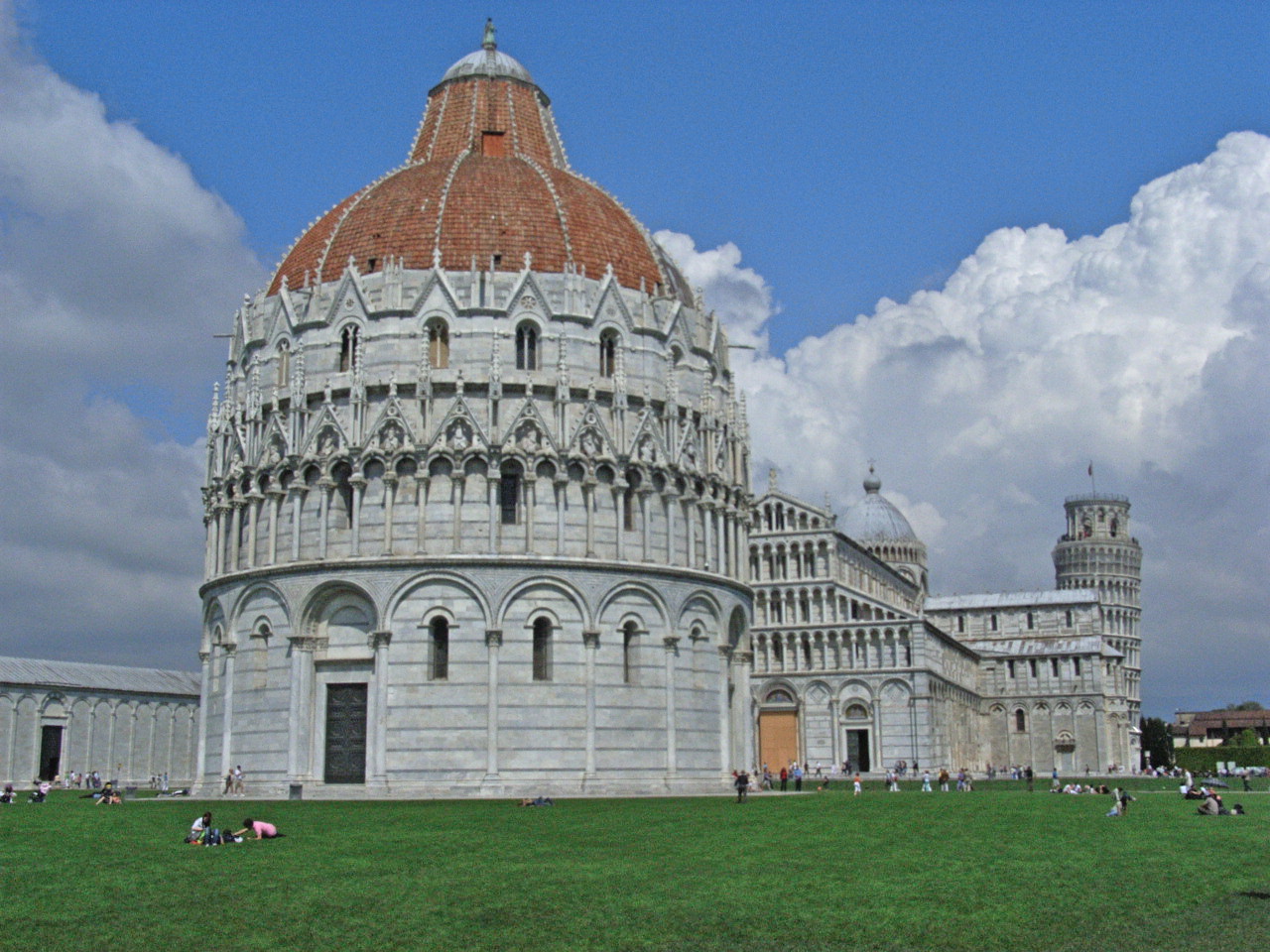 ピサの斜塔はあまりにも有名で、いまさら何も言うことはありませんが、青空の下、洗礼堂、大聖堂、斜塔と3つ並ぶ姿は門を入ってすぐ圧倒されます。
