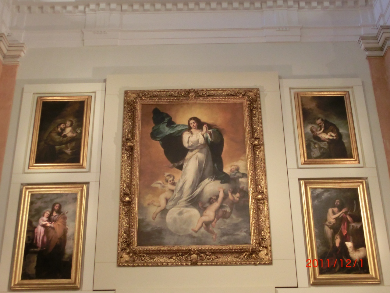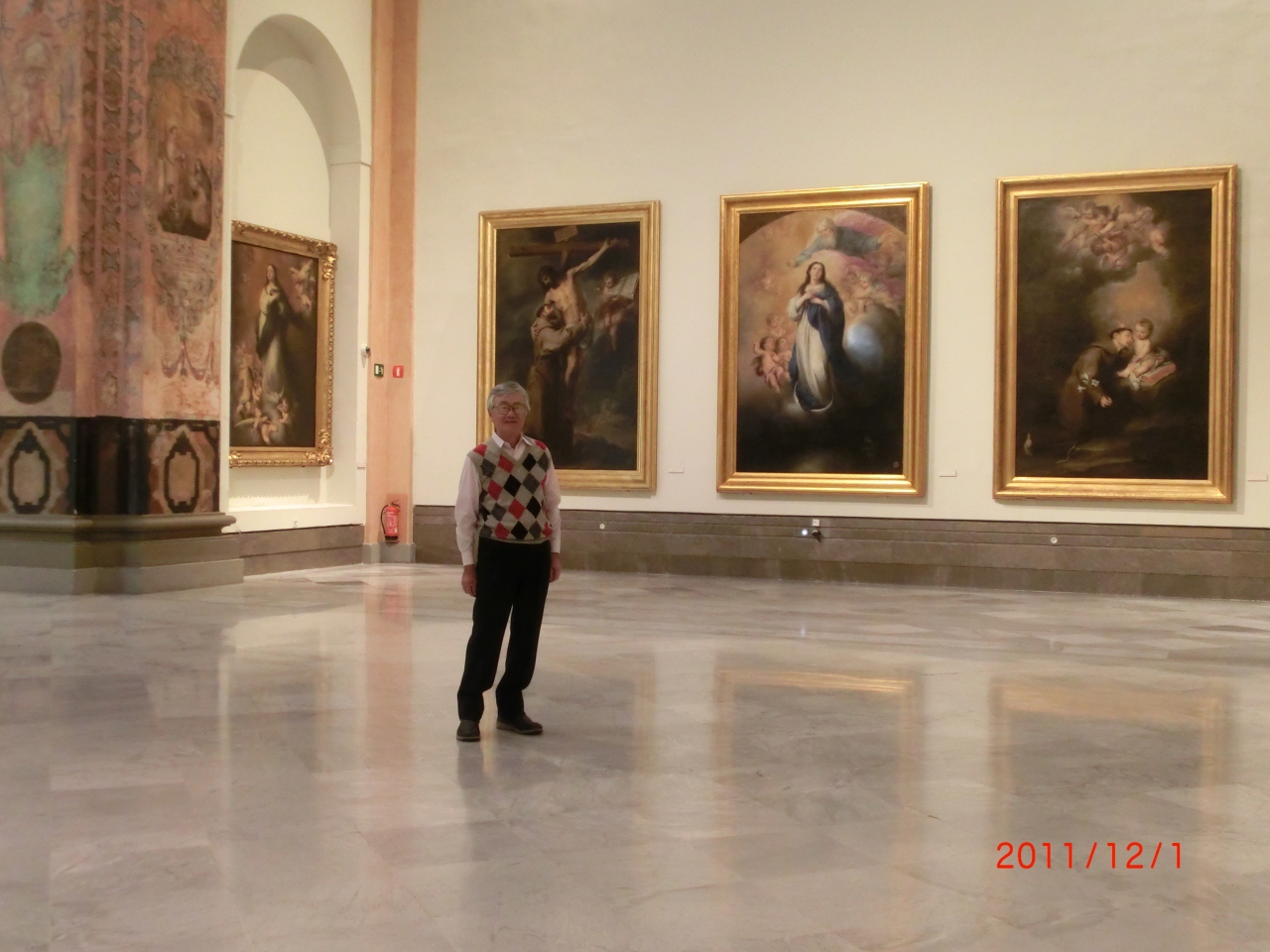 バロセロナを振出しに、スペインの港を歴訪しカサブランカ(モロッコ)とカナリヤ諸島に立寄るクルージングの途中、カディスからのイクスカーションでセビージャ(セビリヤ)に行きました。 15世紀のコロンブスのアメリカ発見と共に栄えたセビージャは、世界遺産の大聖堂が有名ですが、同じくこの街で生まれたり修業をしたムリーリョ・ベラスケス・スルバランといった画家達の17世紀バロック絵画を集めた美術館も一見の価値があります。 通常のツアーでは立ち寄りませんが、1~2時間の自由時間があれば是非訪れたい美の殿堂です。 絵画もさることながら修道院を改装して開設した建物自体も素晴らしく、天井の装飾や中庭はしばし見惚れるほど。 なお館内の写真撮影は他の美術館と同様、フラッシュさえ焚かなければ自由で、添付の3枚目の写真は近くにいた職員に撮ってもらったものです。