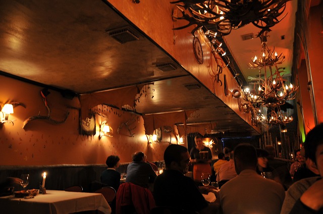 レヴィントラ・サーガはフィンランド北部のラップランド地方の伝統料理を出す店です。店内はトナカイの角を使った照明が店内を彩り、なかなかしゃれた雰囲気でした。我々はラップランド北部の「イナリ」という地方の伝統料理のコースを注文。51ユーロ(約7,000円)とそれなりのお値段でした。メニューは確かメニューは魚のオードブルにトナカイの肉料理、デザートがチョコレートケーキだったような気がします。トナカイの肉はコンビーフのような歯ごたえで、クセのない味でした。なお、支払いにはサービス料が含まれますのでチップは不要です。