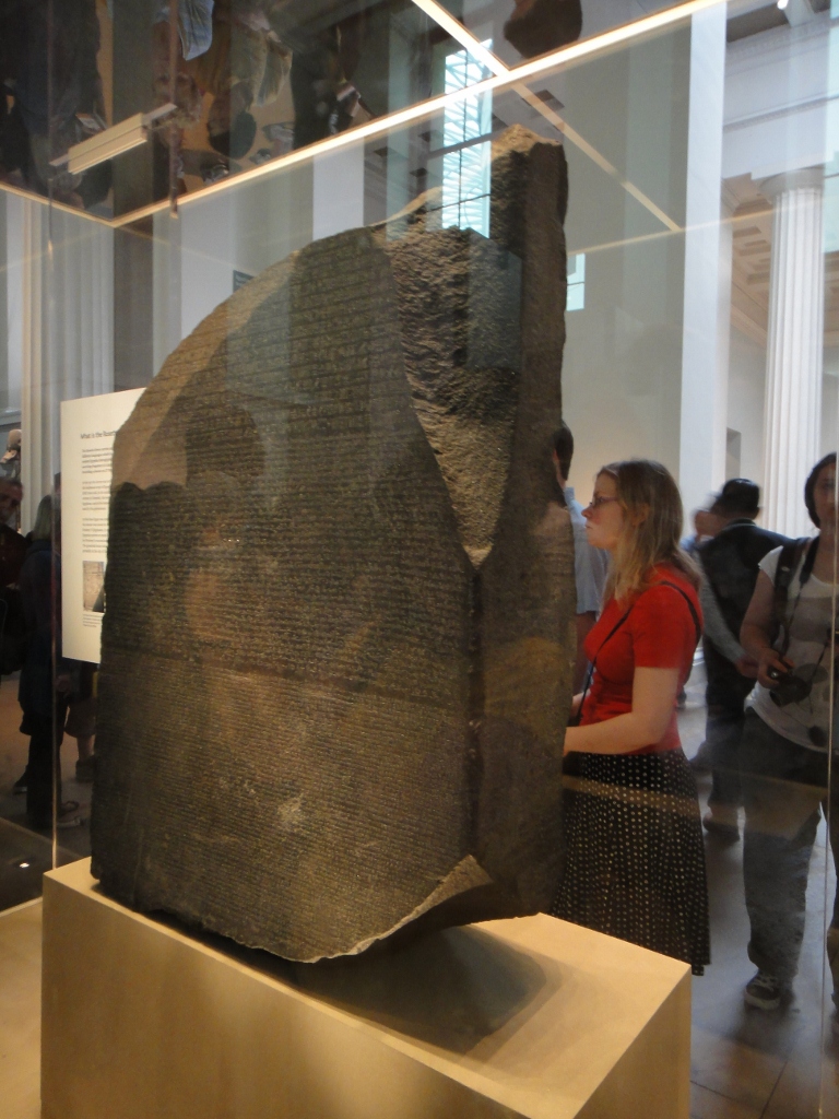 ロゼッタストーンを見に行きました。入場無料のため何度でも気兼ねなく入れますが、かなりの混雑です。ロゼッタストーンは入り口左手すぐにあって、人だかりでなかなかゆっくり見れなかったため開館直後の落ち着いた時を狙った方がよさそうでした。