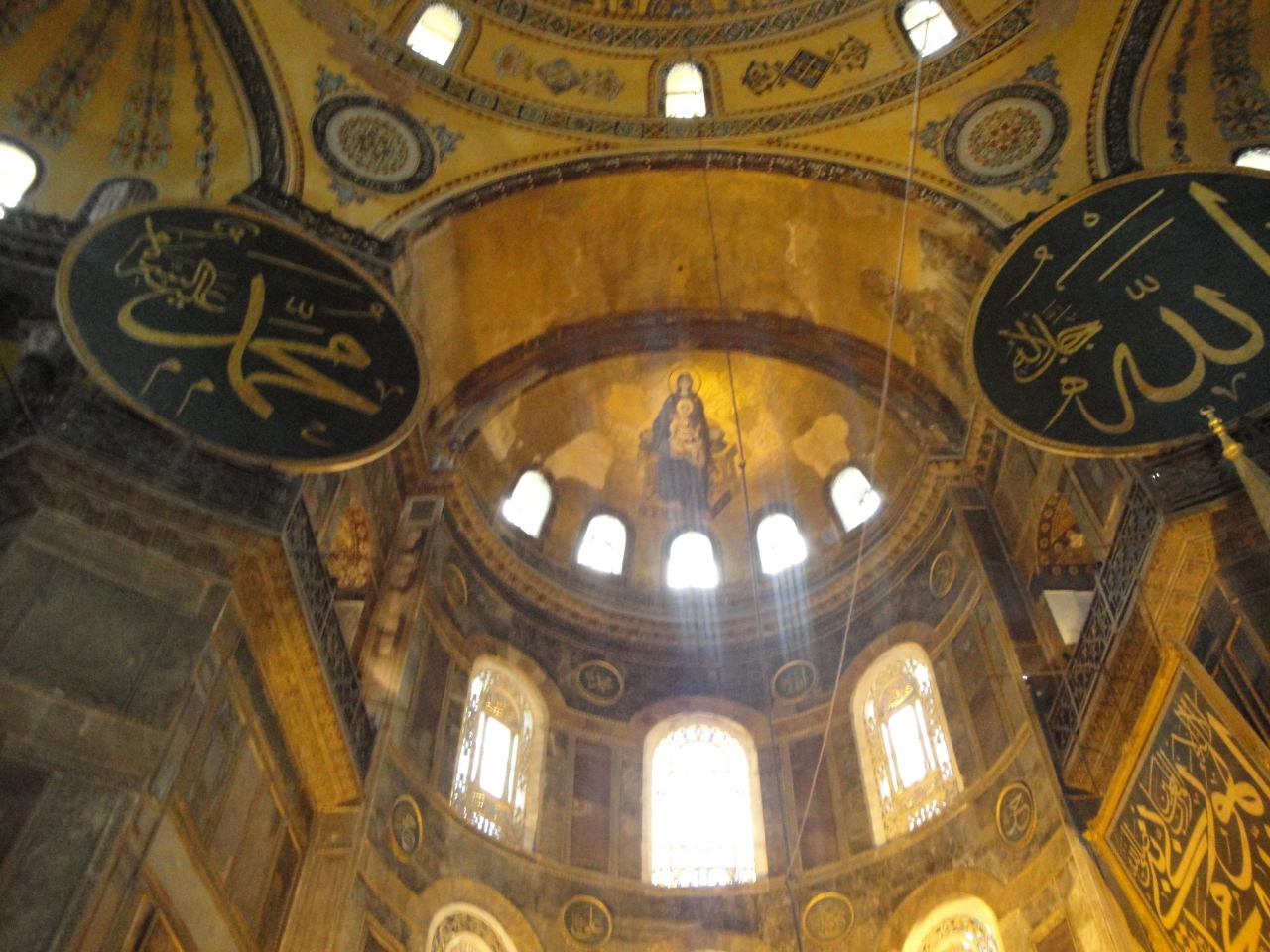 中でも一番感動したのは、もともと、キリスト教の寺院だったものをイスラム教の寺院にする時に、建物を取り壊さずそのまま利用し、きれいな形でキリスト教時代のなごりも残っていることです。メッカの方向が建物の中央のラインから少し斜めにずらして作られているのに、感動しました。