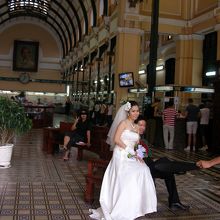 見所が以外と少ないホーチミン。時間潰しにフラッと入ってみました。中に入ると、ホーチミンさんの肖像がお出迎えしてくれます。建物はヨーロッパ調の造りになっています。郵便業務も行っていますが、お土産屋さんの割合が多いように感じました。