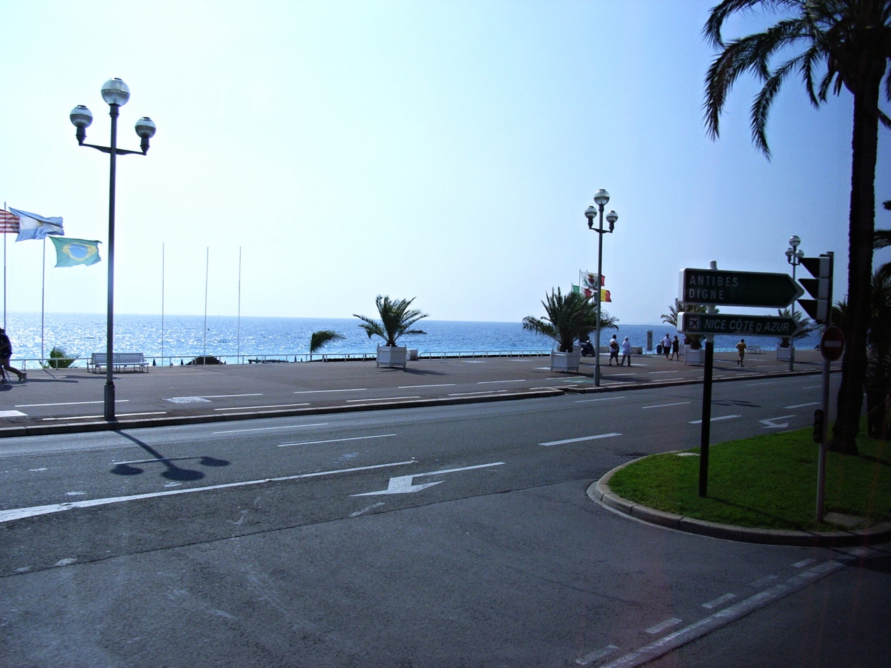 ニースの海岸に沿った通りはプロムナード・デ・ザングレと呼ばれ、地中海の青い海を眺める景勝地として有名です。