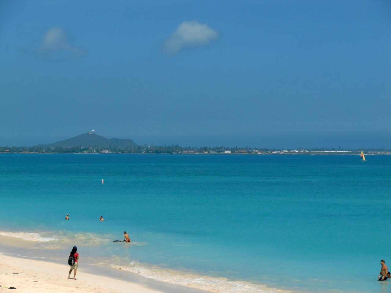 天気の良い日に初めて行きこんな白いビーチは見たことない。本当にきれいな海だと大感激。でも、その日は他に予定を入れていたので、下見程度で次の予定へ。そして2日後再度カイルア・ビーチに行った日は天気が悪く白いビーチも灰色に。なので滞在中の天気の良い日に行かれることをお勧めします。