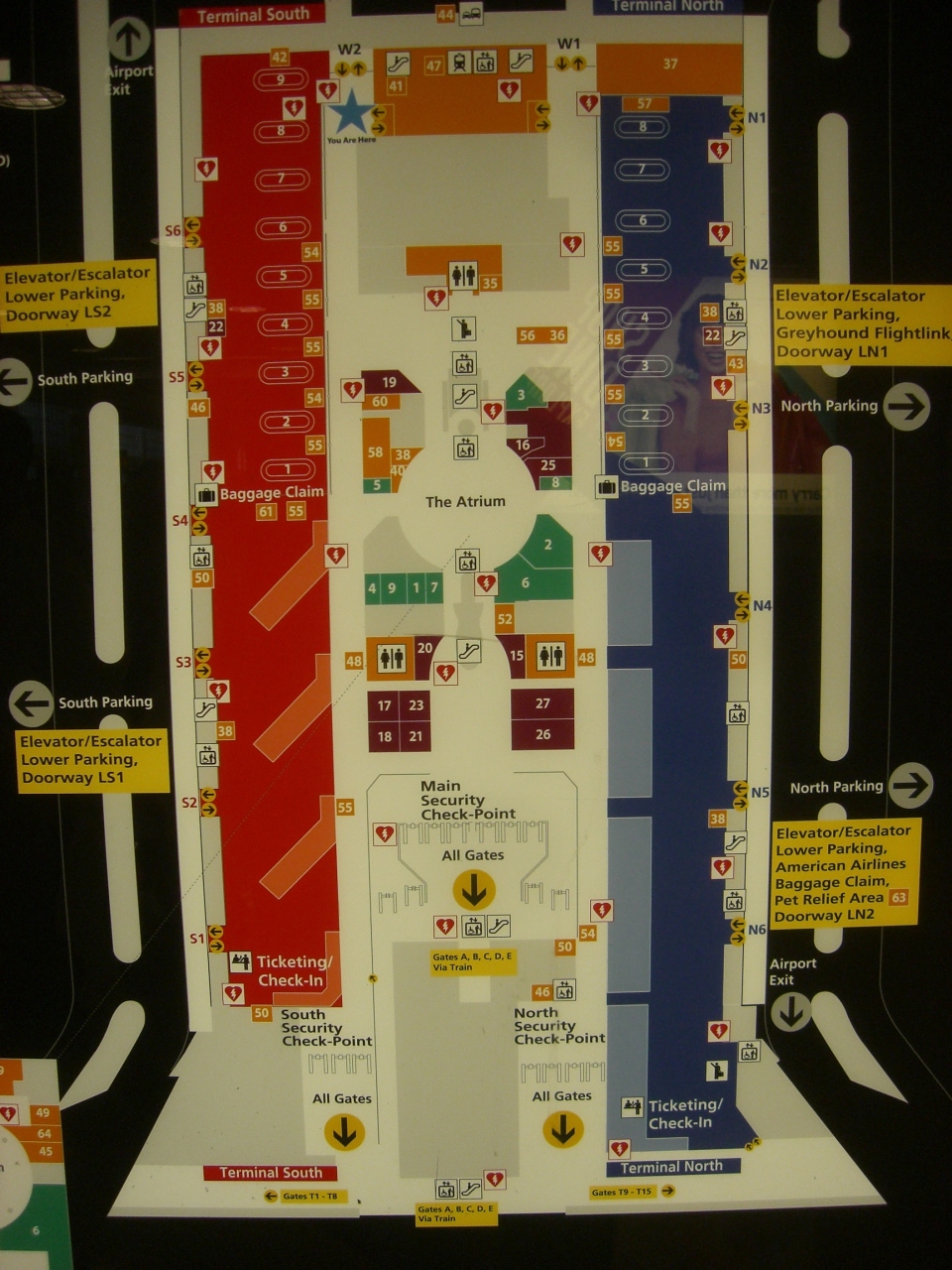 初めて来た人はとにかく大きいと思ったでしょう。時間があれば空港内を歩いて周るのがいいと思います。まず「飛行機が着陸し、機外に出たら出口まで電車で移動することもある」と覚えておいたほうがいいと思います。突然電車(無料)が走っておりパニクッてしまわないように。コンコースは分かりやすいように平行に並んでいますがいざ行ってみると迷ってしまうこともあるでしょう。