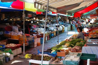 「中部市場」に行って来ました!ソウル中心部に残る最後の大規模在来市場の一つだそうで、乾物が主に売られていますが、野菜や果物などもありなかなか楽しい!市場で真っ先に見つけたのは、しぼりたてのゴマ油!しぼりたては、やはり香りが違います。韓国のりも大量にgetしましたが、後でリサーチしてみたら、ロッテマートで買うよりずいぶんお安く買えたようです。あとは、タラコのキムチ(明太子)とイカのキムチを1Kgづつお買い上げ。家で測ってみたら、それぞれ200g位おまけしてくれていました!有難いけど、重かった~!活気ある市場を体験できて良かったです。