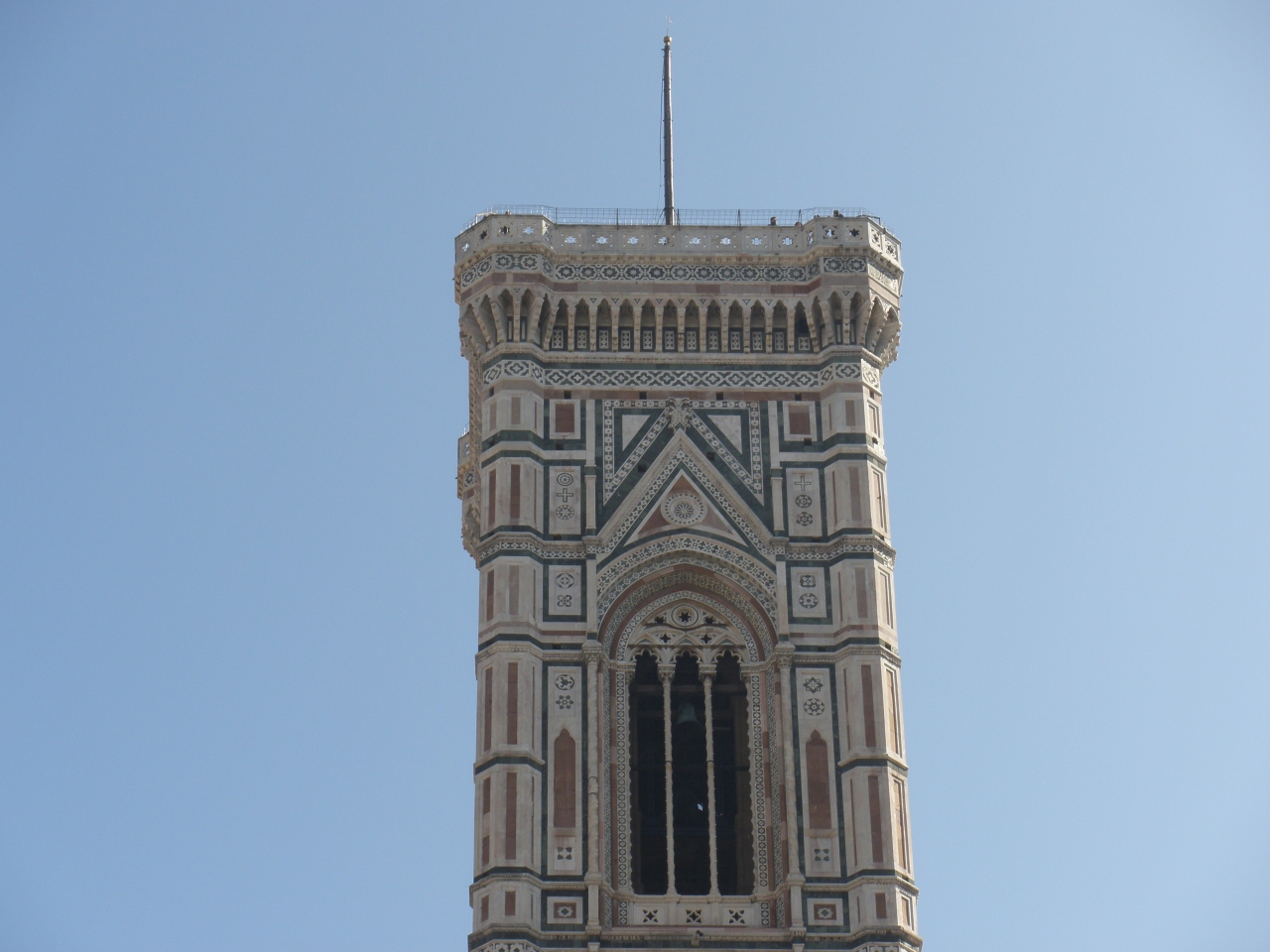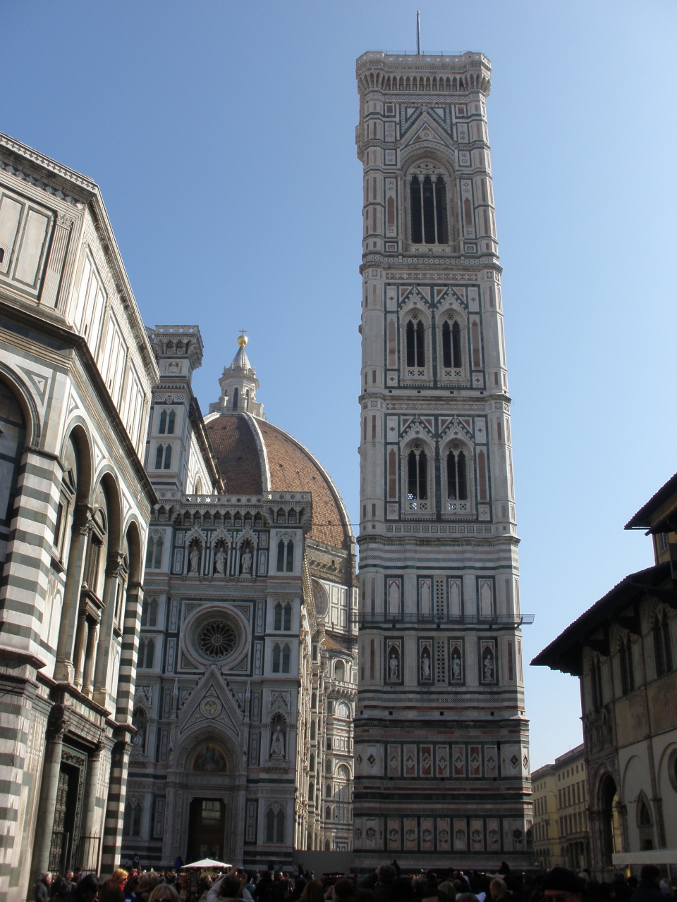 フィレンツェ観光の中心地、ドゥオーモ広場のサンタ・マリア・デル・フォーレ大聖堂の側にある、高さが約84mの鐘楼です。