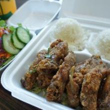 空港からわずか車で5分程の場所にある、プレートランチで人気のお店です。ハワイ島在住の方のブログで知ったお店。ブログで評判の高かった「コリアンチキン」をオーダーしてみると、手羽は少々食べにくかったですが、あっさりしょう油風味のたれがかかっていて、なかなかの美味でした。ただし、どの辺が韓国風なのかはギモン。ホノルルで食べていたプレートランチでは、ごはんは大抵1スクープでしたが、ハワイ島ではノーマルでも2スクープ!かなりのボリュームで、とても食べきれませんでした!