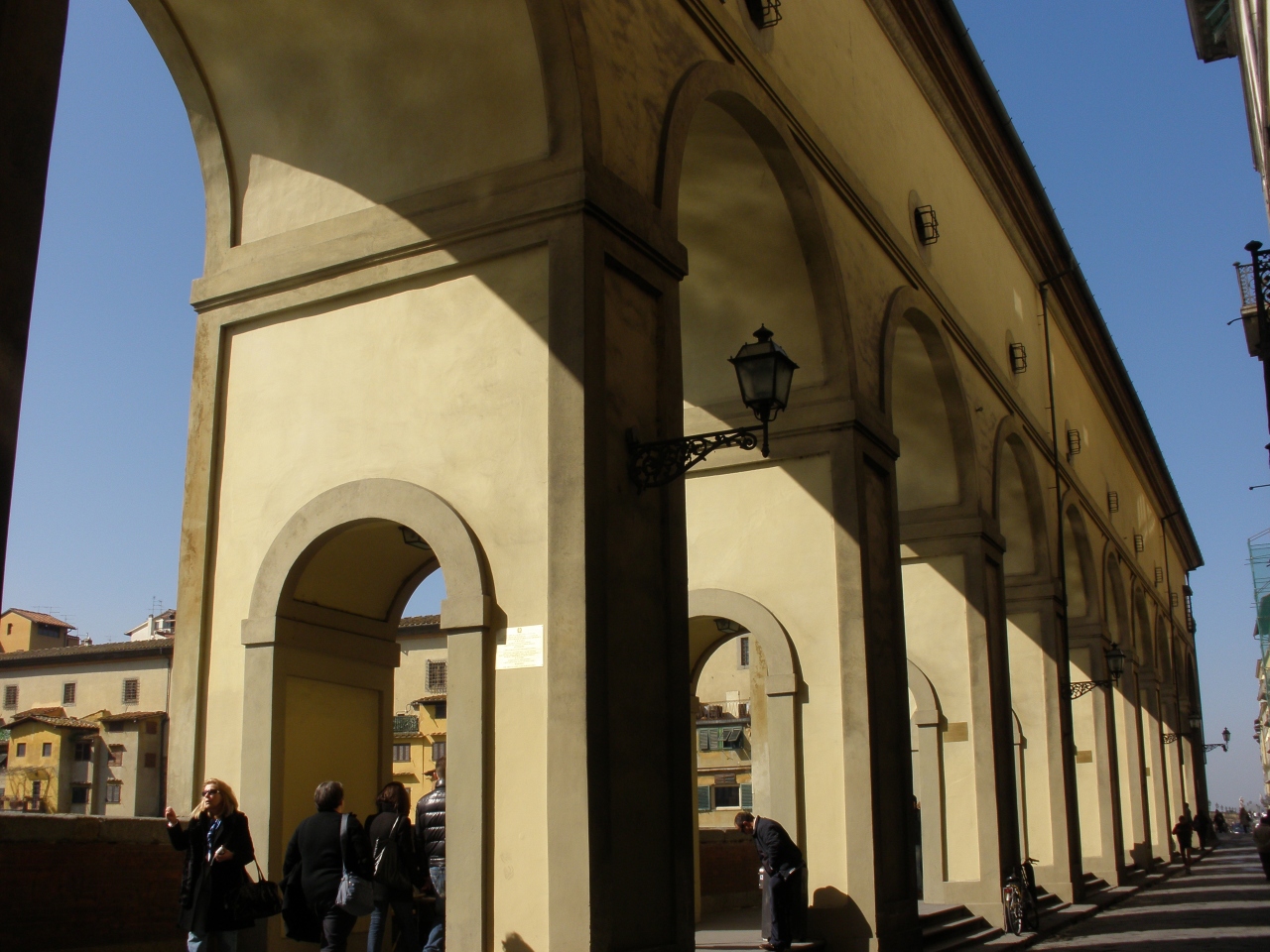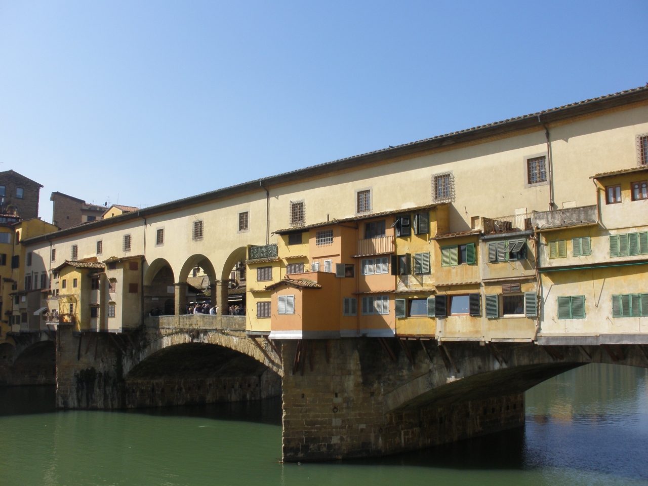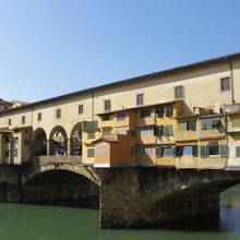 ミケランジェロ広場やウフィツィ美術館の廊下からも眺められる、アルノ川に架かる外観がかわいい橋です。