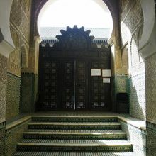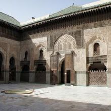 14世紀に建てられたイスラム教の神学校「ブー・イナニア・マドラサ」に行きました。モロッコの場合、ムスリム以外はモスクの見学はできないのですが、神学校は見学OK!見事なイスラム建築を堪能できます。入口がわからず地図を見ていると、「こっちこっち!」と守衛さんが教えてくれました。1人10DH(百円)でした。