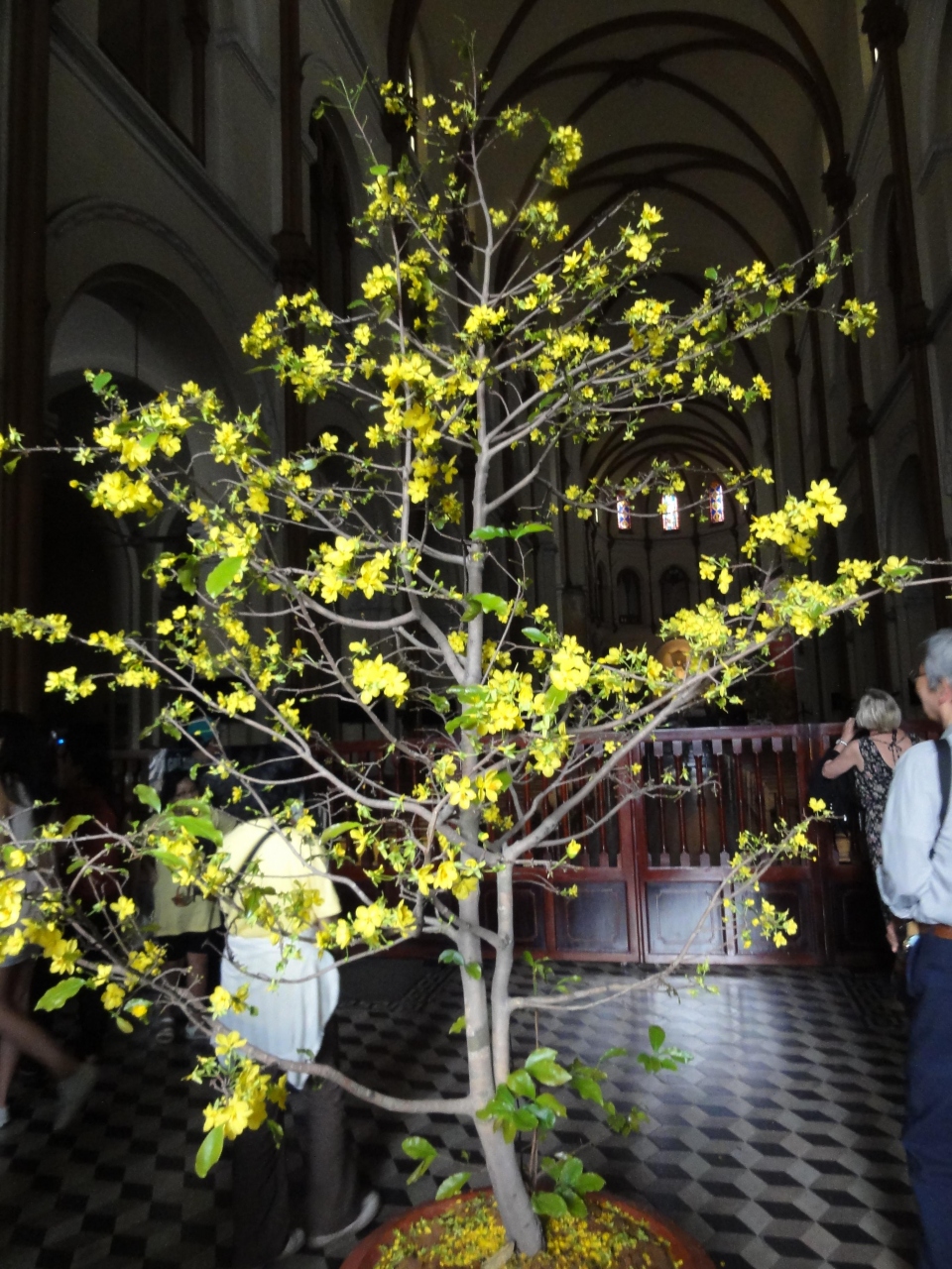 ツアーのホーチミン観光で案内されました。お隣の中央郵便局同様、19世紀フランス統治時代に建てられたそうです。教会前には大きなマリア像が立ち、写真ポイントになってます。ドンコイ通りのすぐ近くにあります。春節の休み中だったせいもあり、中には春節時の植木がまだ飾られていました。