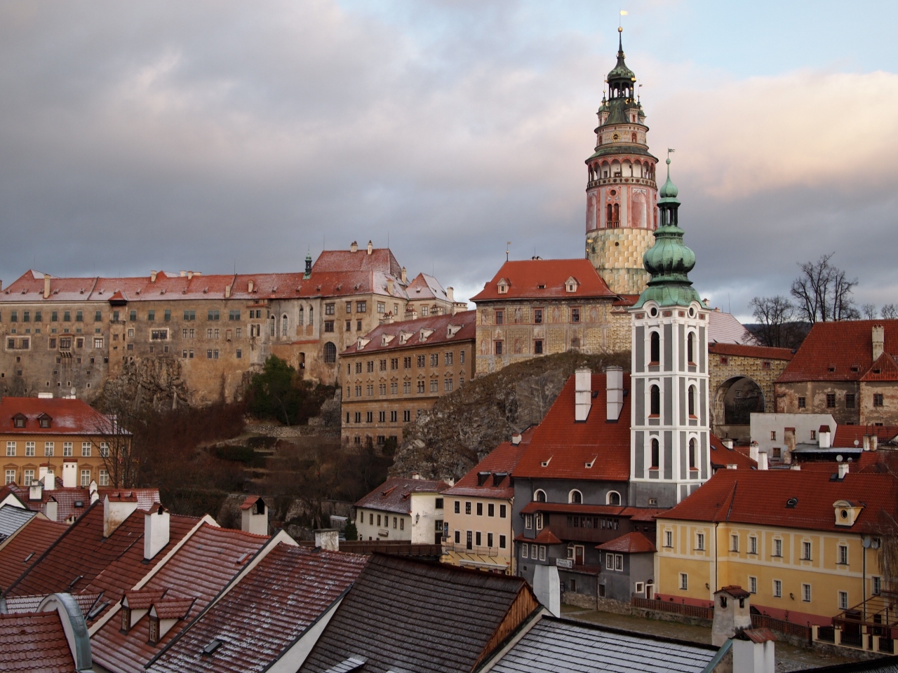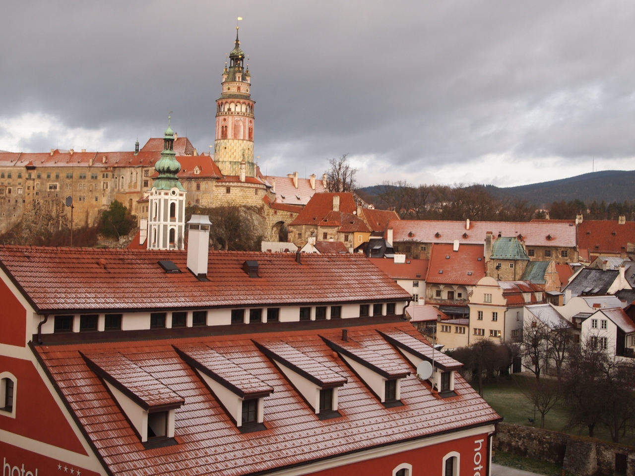 チェスキー・クロムロフ城や搭への眺めがよい場所は、