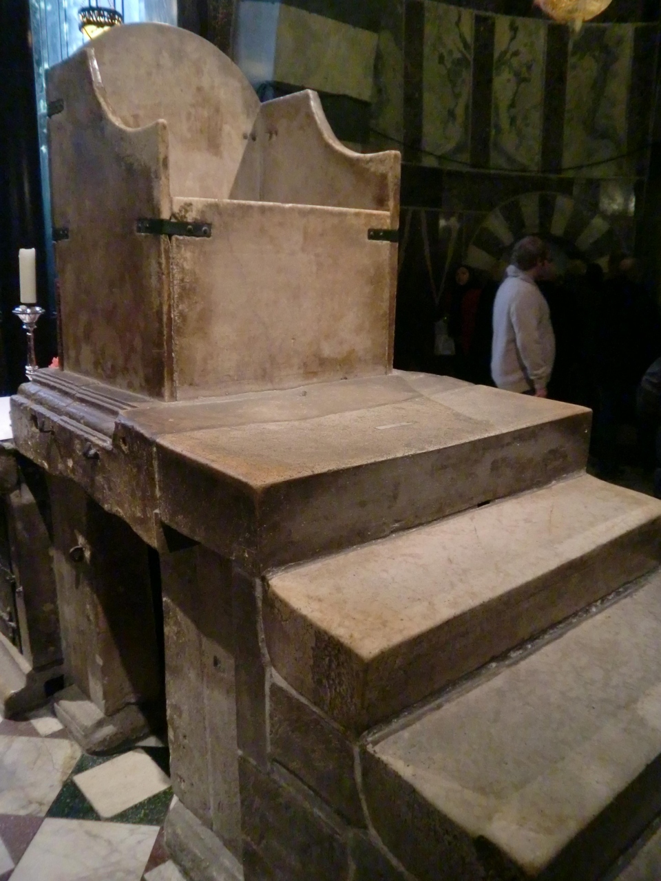 なお、二階部分にカール大帝の命で作られた椅子がありますが、当の大帝本人は座れなかったというのに、こともあろうにドイツ人の義父は座ったことがあるのだそうです。実際、座ろうと思えば座れるほど警備は手薄でしたが、もちろん座るのは禁止です!
