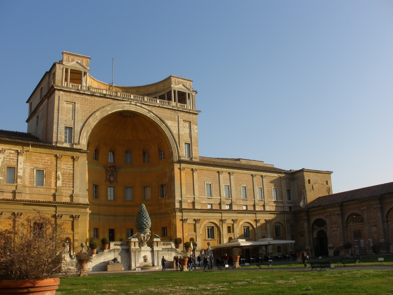 システィーナ礼拝堂ではガイドさんが説明できないので、入る前に中庭でミケランジェロ・天地創造・最後の審判のレクチャーを受けました。