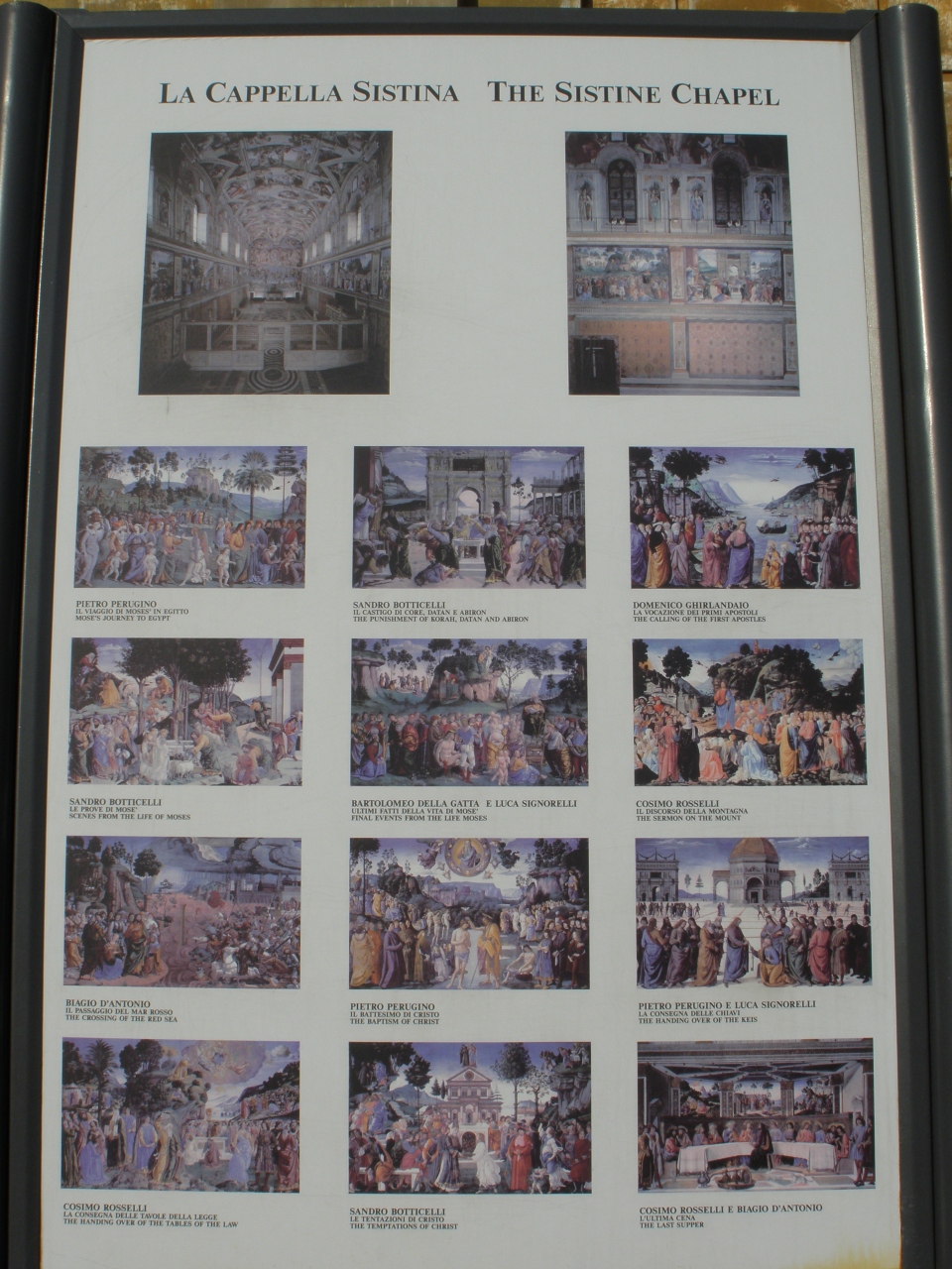 堂内はほの暗く、巨大な天井画と礼拝堂正面にある壁画・最後の審判の迫力とあまりの素晴らしさに、言葉がでませんでした。
