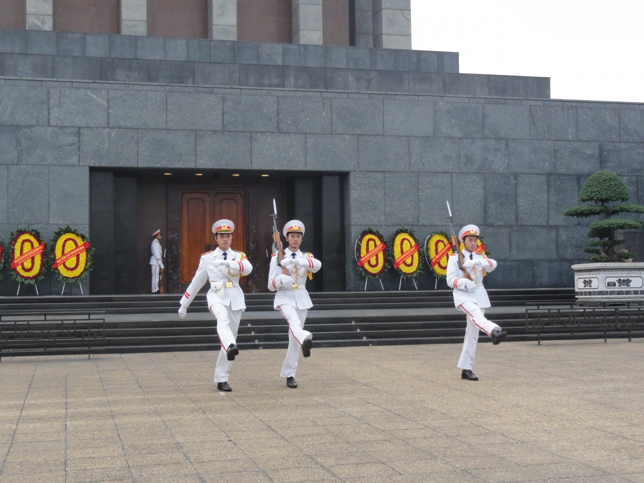 広く閑静なところに廟は建てられ、衛兵に守られています。周りは官庁街のようで、規模は小さいですが、中国の天安門広場のような感じでした。散歩したり、走ったりする人が居ました。