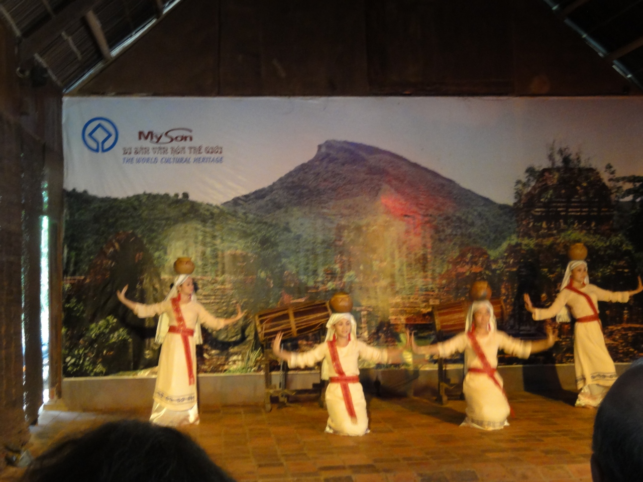 森の中に埋もれていた遺跡を発見したのはフランス人だったそうです。ベトナム戦争でかなり破壊されたとか、砲弾の穴がありました。入り口から少し入ったところで、カートに乗り、また歩くのですが、民族舞踊が見られる劇場で、一息ついて遺跡見学出来ます。宝物館や浴場跡、石像等、森の中に溶け込んだ素朴な遺跡でした。奥の方にも遺跡が広がってるようですが、もう来る事はないと思いました。