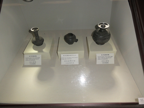 ライトアップされた雁鴨池は観光客だけでなく、地元の人の憩いの場でもあるようで、素敵でした。池はお堀の役目をしてましたが、一方では、要らなくなったものを棄てる場所としても使われたそうで、池から発掘された遺物が数多く展示されていました。