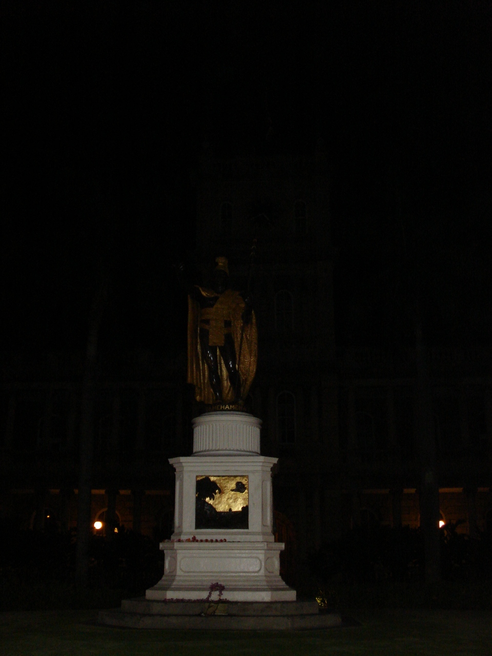 ホノルル旧市内に建っていたカメハメハ大王像に帰国前夜に見に行きました。名前は聞いたことがありました。夜8時以降でしたので像には弱いライトアップがしてあり見ることが出来ました。このあたりにはタクシーが余り通っていないのでバスでホテルに戻りました。