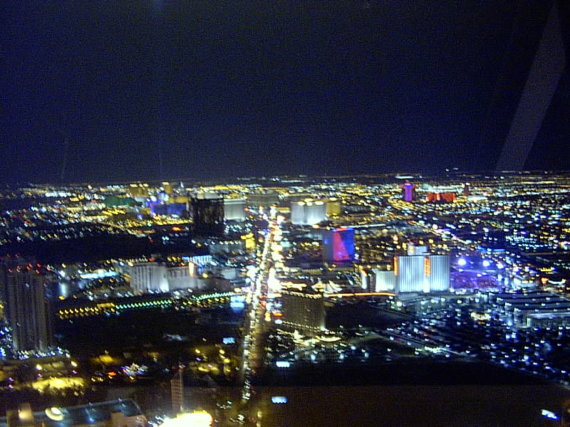 このタワーの100階以上の高さにある展望台からの夜景は最高! 夏になると、日が暮れるのが遅いので、かなり遅くなってからタワーに行かないと、夜景は見れませんが…。 ストリップに建つホテルのネオンがかなりカラフルなので、タワーの展望台から望む夜景もかなりキラキラとカラフルで人工的ですが、私は結構好きです。 日本国内、世界各国で夜景がキレイで有名な都市も他にありますが、このカラフルな夜景はラスベガス独特なのかもしれません。