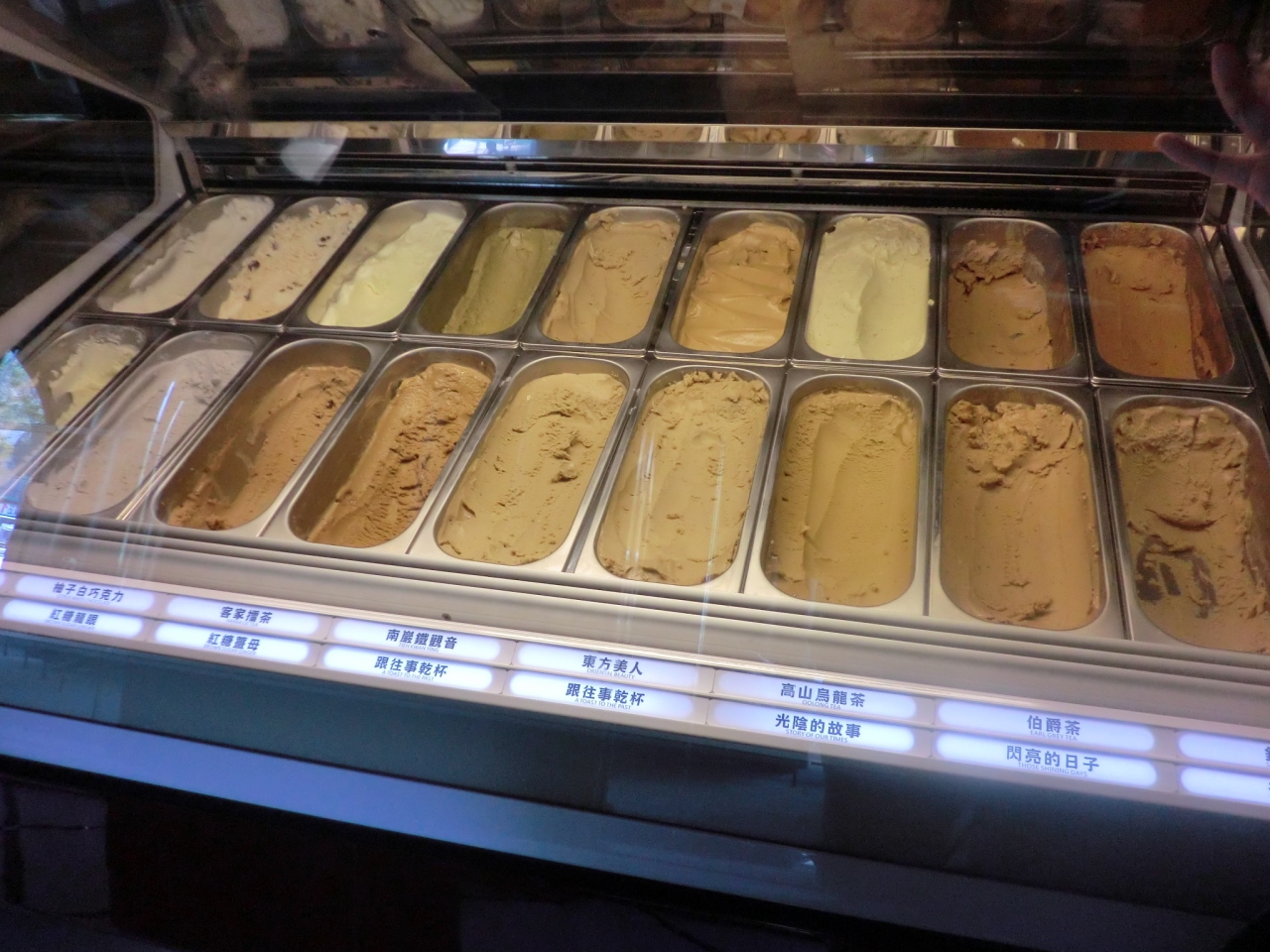 伝統菓子は、CDの箱に入り、本棚に陳列。アイスクリームは、フルーツ、茶、チョコのエリアに分かれ、チョコ、茶のアイスクリームのラインナップは圧巻。試食は3種まで、1スクープ90NT$、2スクープ150NT$。トッピングは2スクープの場合3種まで無料。濃厚な味が楽しめます。ハーフの男性店員がおり、日本語での対応も可能。お土産に最適な伝統菓子は100NT$程度からあります。包装のデザインもすばらしい。建物、インテリア、スィーツどれも申し分なし。昔の病院を意識しており、店員さんの制服は従軍看護婦のような感じ。べた褒めですが、折角台中駅に来られた方は建物を見るだけでも価値あり。中山路・緑川東路角(台中駅正面台中客運乗り場左側の道をすすみ最初の角。)