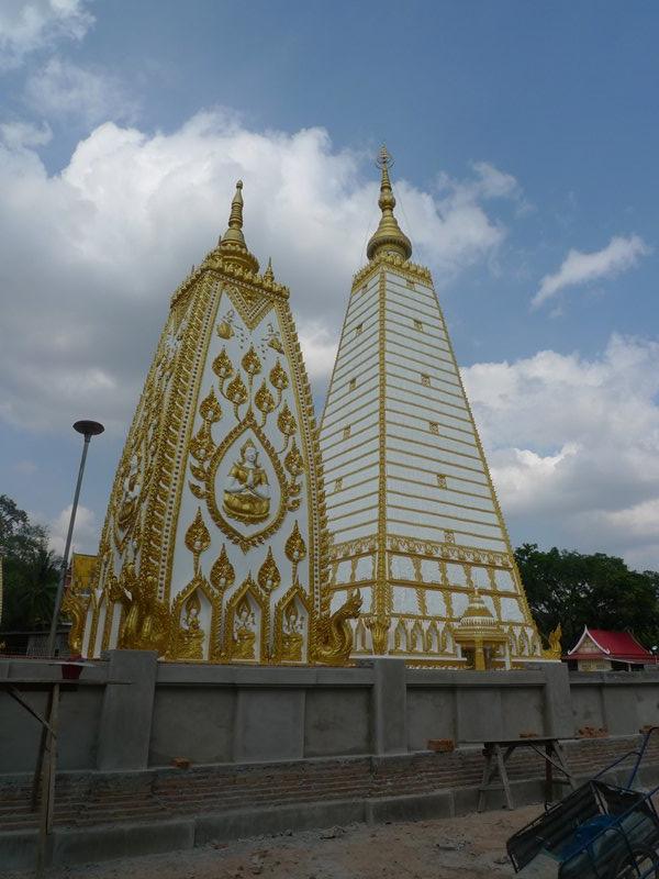 寺院の周辺には大きな建物が無く、500メートル以上離れた所から寺院のてっぺんが見え、地図が無くても辿りつけます。この形は初めて見ました。金色と白色のコントラストがきれい。中には祭壇があり、吹き抜けになっています。