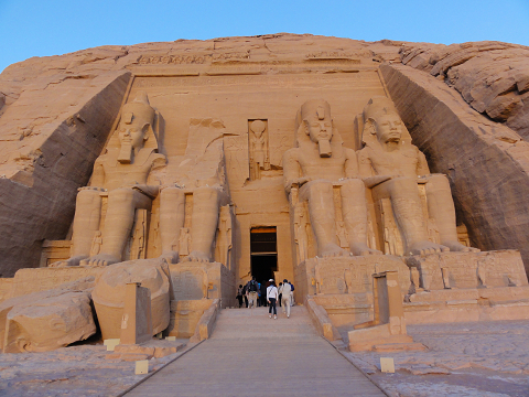 翌日、神殿で日の出を見ようと行きました。中の至聖室は年2回太陽光があたるそうです。移築前はラムセス2世の誕生日に太陽光があたっていたそうですが、計算が狂い2日ほどずれてしまったとのことです。前夜のショーで壁画の解説も聞いていたので、神殿の中も興味深く見られました。