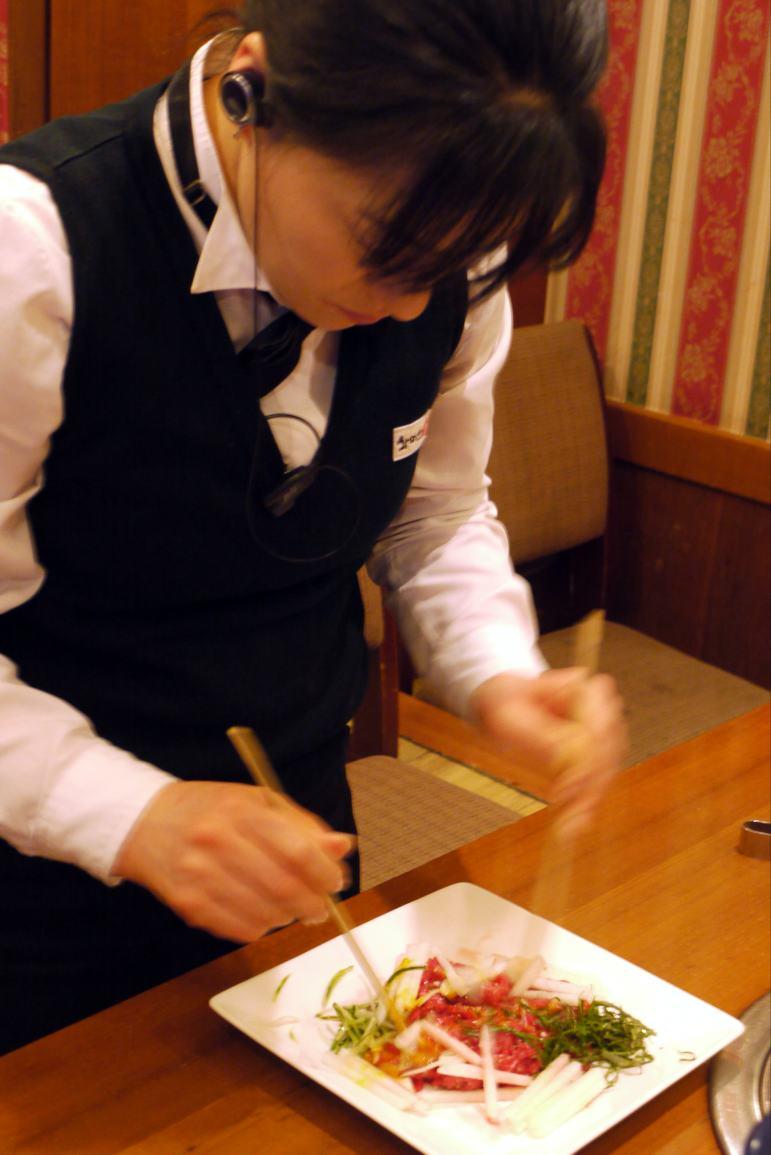 しかし今回は、予約無しで行ったのに案内された席に、すでにバンチャンが並べられていて、野菜はクタッとしていました。