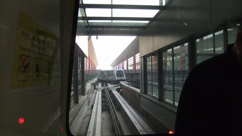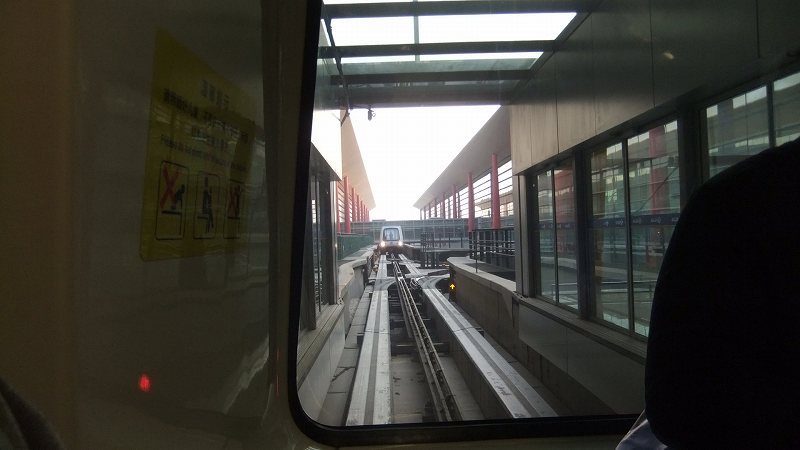 北京空港第3ターミナルで出国手続きしたらシャトル列車で移動して飛行機に乗り込む