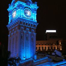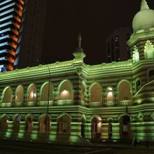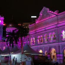 ムルデカスクエアの目の前にある全長約137mもの巨大な歴史的建造物が、週末の夜は七色にライトアップされ、とっても美しいです☆